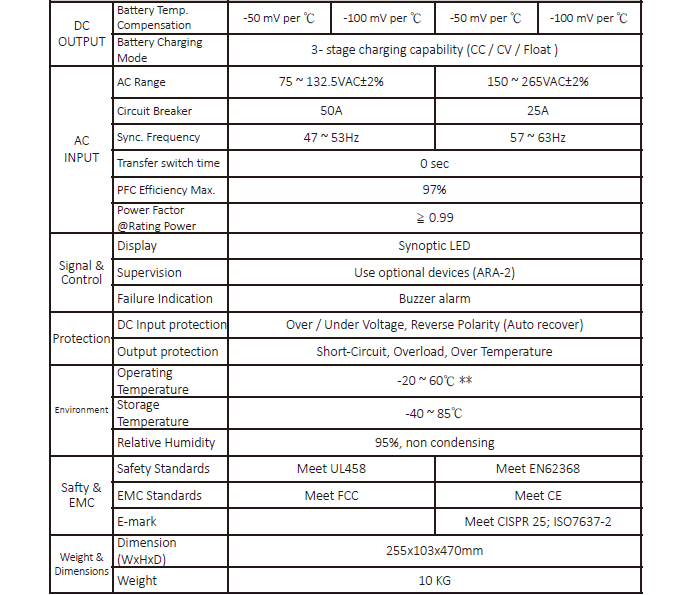 ● Input protection: Reverse Polarity (auto recovery ) / Under Voltage / Over Voltage